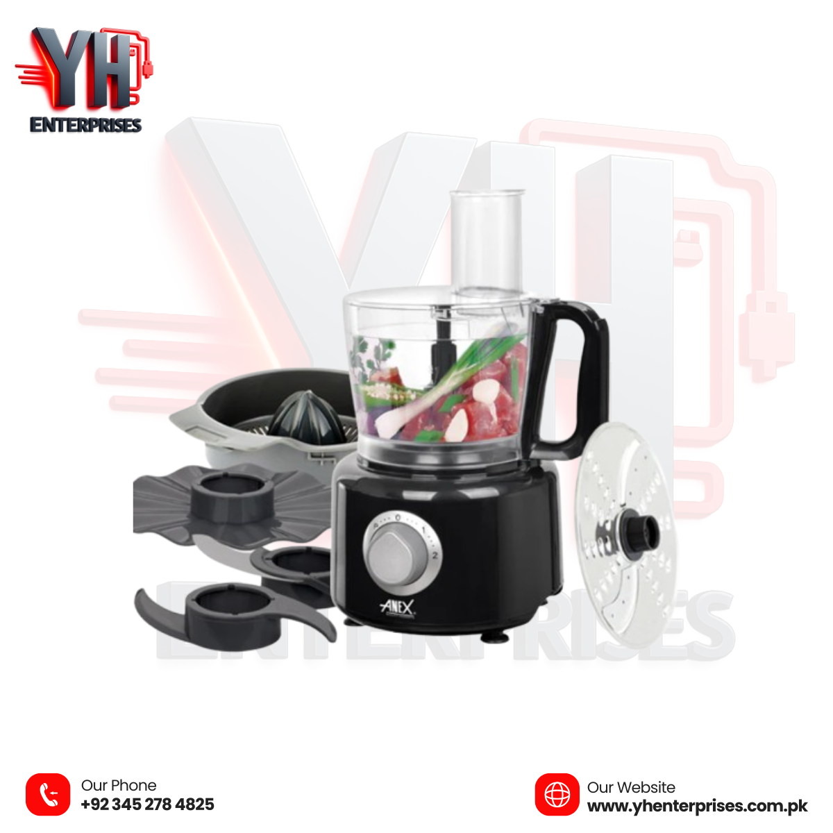 The Anex AG-3144 Deluxe Chopper is a high-power, multi-functional kitchen appliance designed for fast and efficient food preparation. Equipped with an 800-watt copper motor, advanced safety features, and versatile attachments, it handles chopping, slicing, shredding, kneading, whisking, and citrus juicing with ease.