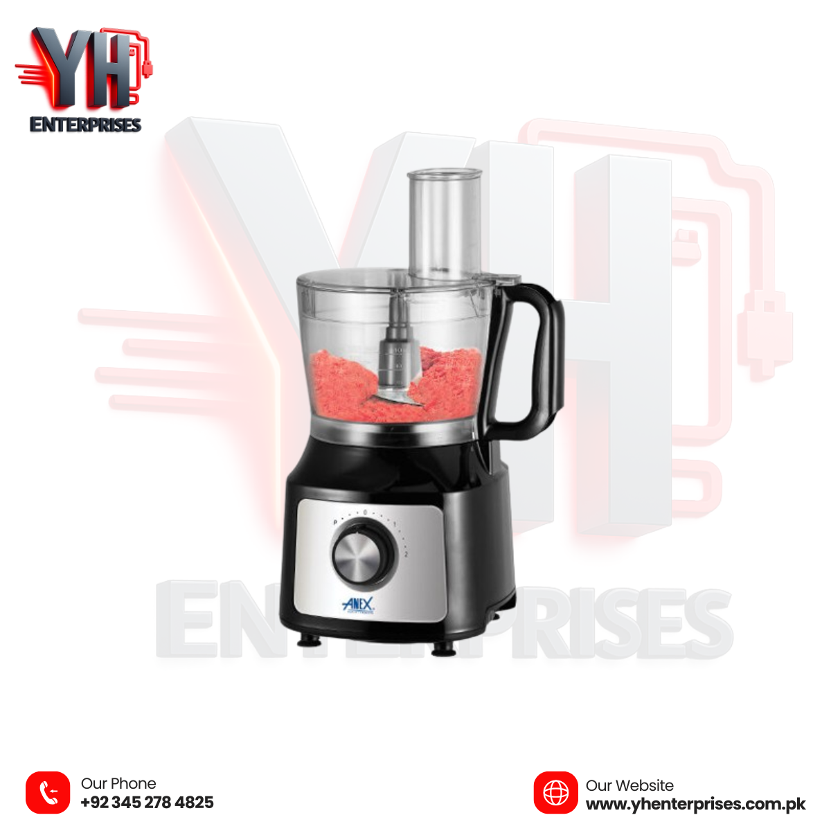The Anex AG-3142 Deluxe Chopper is a powerful and versatile kitchen appliance designed to simplify everyday food preparation. With a reliable copper motor, dual-speed control, and multiple attachments, it delivers efficient and precise performance for chopping, slicing, shredding, and dough mixing.