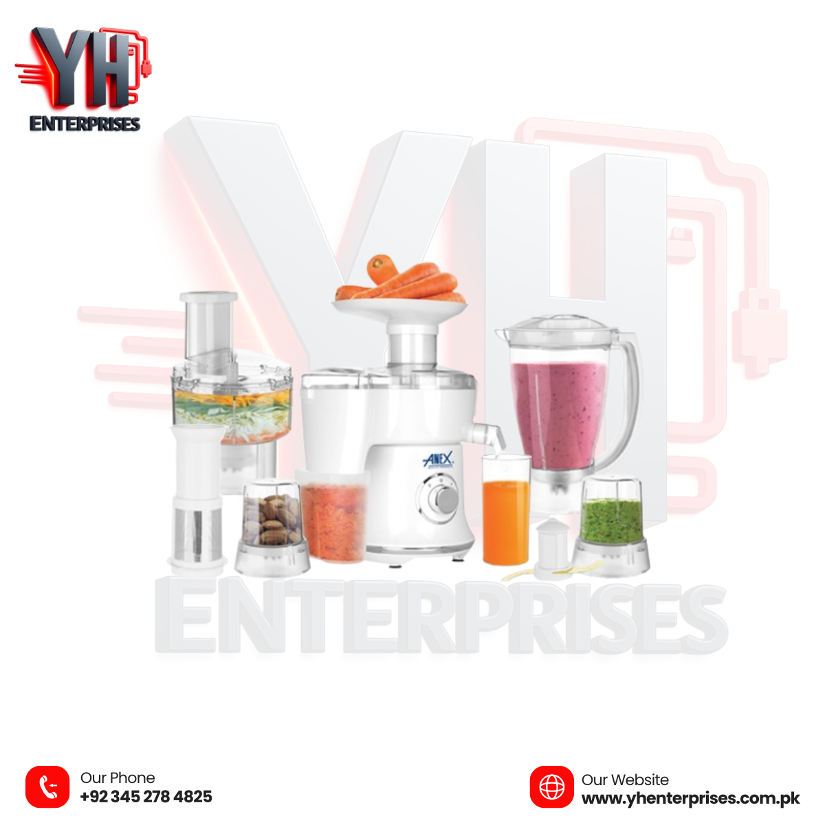 The Anex AG-3153EX Deluxe Kitchen Robot is a compact yet powerful multi-function kitchen appliance designed to handle everyday food preparation with ease. Featuring titanium-coated blades, unbreakable jars, and versatile performance, it delivers reliable results while ensuring long-lasting durability.