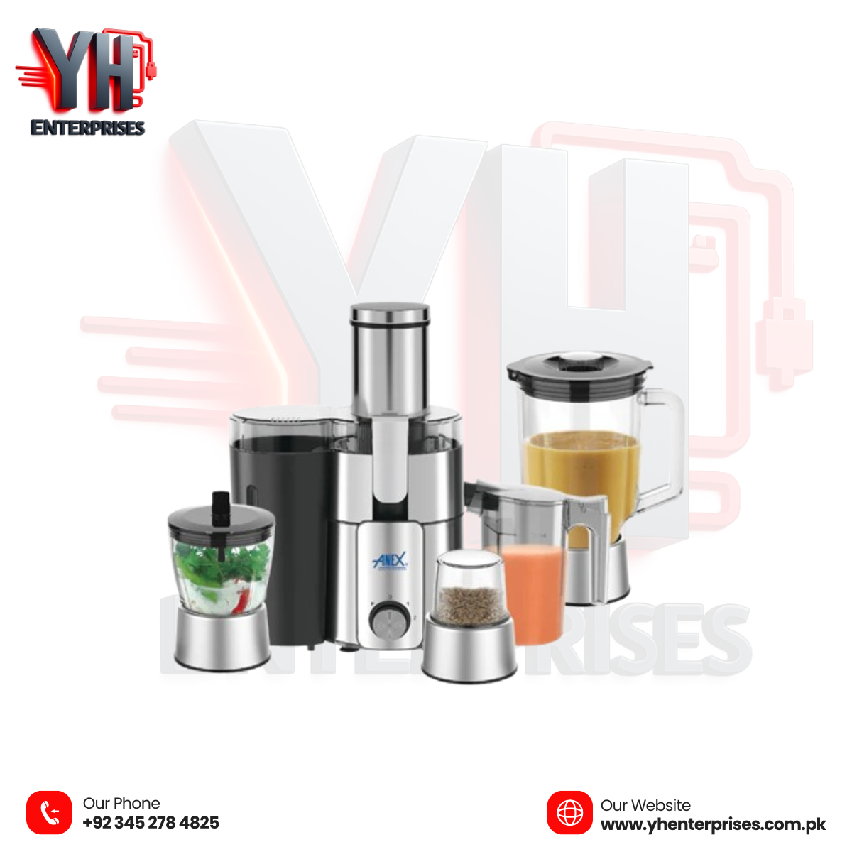 Elevate your kitchen experience with the Anex AG-191 4-in-1 Juicer Blender Grinder, a multi-functional powerhouse designed for juicing, blending, and both wet & dry grinding. Powered by a 600-watt high-efficiency motor and encased in full stainless steel housing, this appliance delivers strength, durability, and style, making it perfect for daily home use and heavy-duty kitchen tasks.