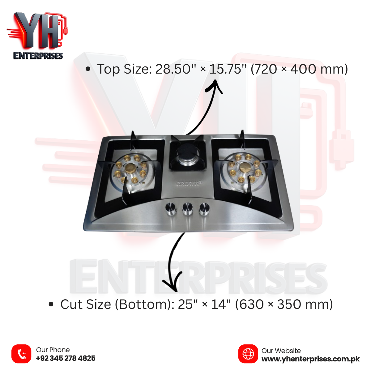 Give your kitchen the perfect upgrade with the Crown CR-15S Built-In Gas Hob — where powerful cooking meets modern elegance. Designed for busy Pakistani homes, this premium 3-burner stainless steel hob delivers fast heating, precise flame control, and dependable safety in a sleek built-in design.