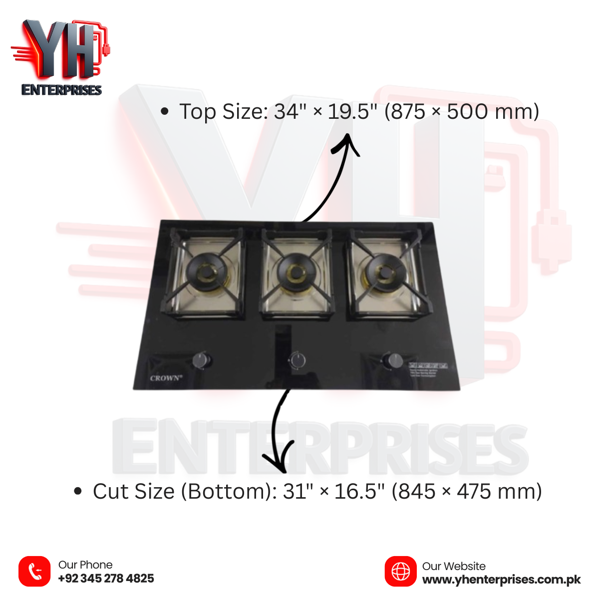 Bring luxury and powerful performance to your kitchen with the Crown CR-3115G Built-In Gas Hob — a perfect fusion of modern glass elegance, smart safety, and high-efficiency cooking. Designed for contemporary Pakistani homes, this premium 3-burner hob delivers fast heating, precise flame control, and effortless cleaning in one stylish package.