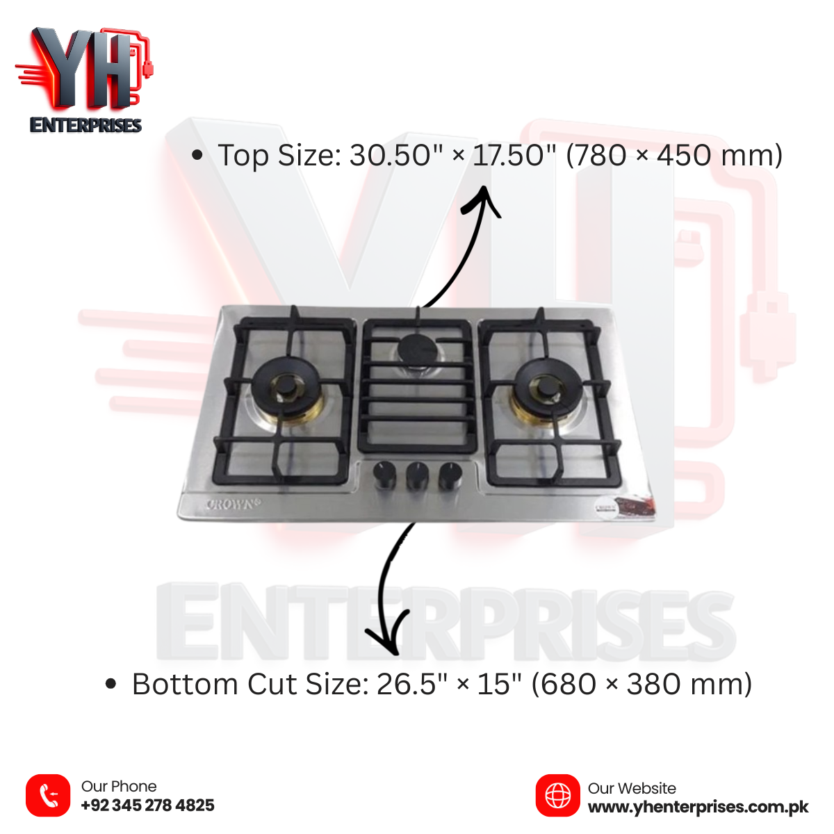 Upgrade your kitchen with the Crown CR-3114 Built-In Gas Hob — designed for passionate cooks and culinary enthusiasts who value style, precision, and efficiency. This 3-burner stainless steel hob combines robust burners, sleek design, and advanced safety features to make cooking faster, safer, and more enjoyable.