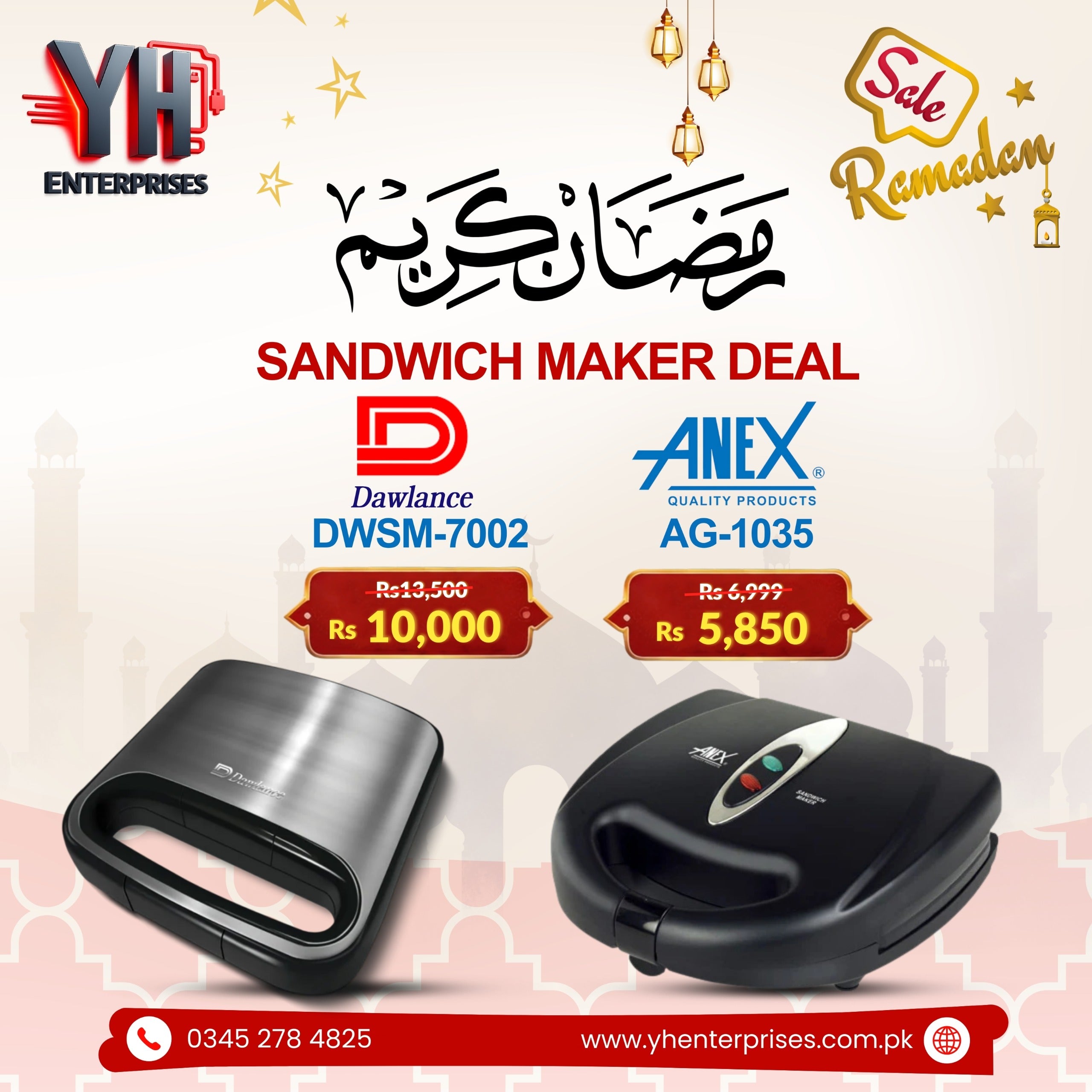 Whether you choose the stylish Dawlance DWSM 7002 or the durable Anex AG-1035 Deluxe Sandwich Maker, you’re guaranteed fast performance, easy maintenance, and perfectly toasted sandwiches every time.