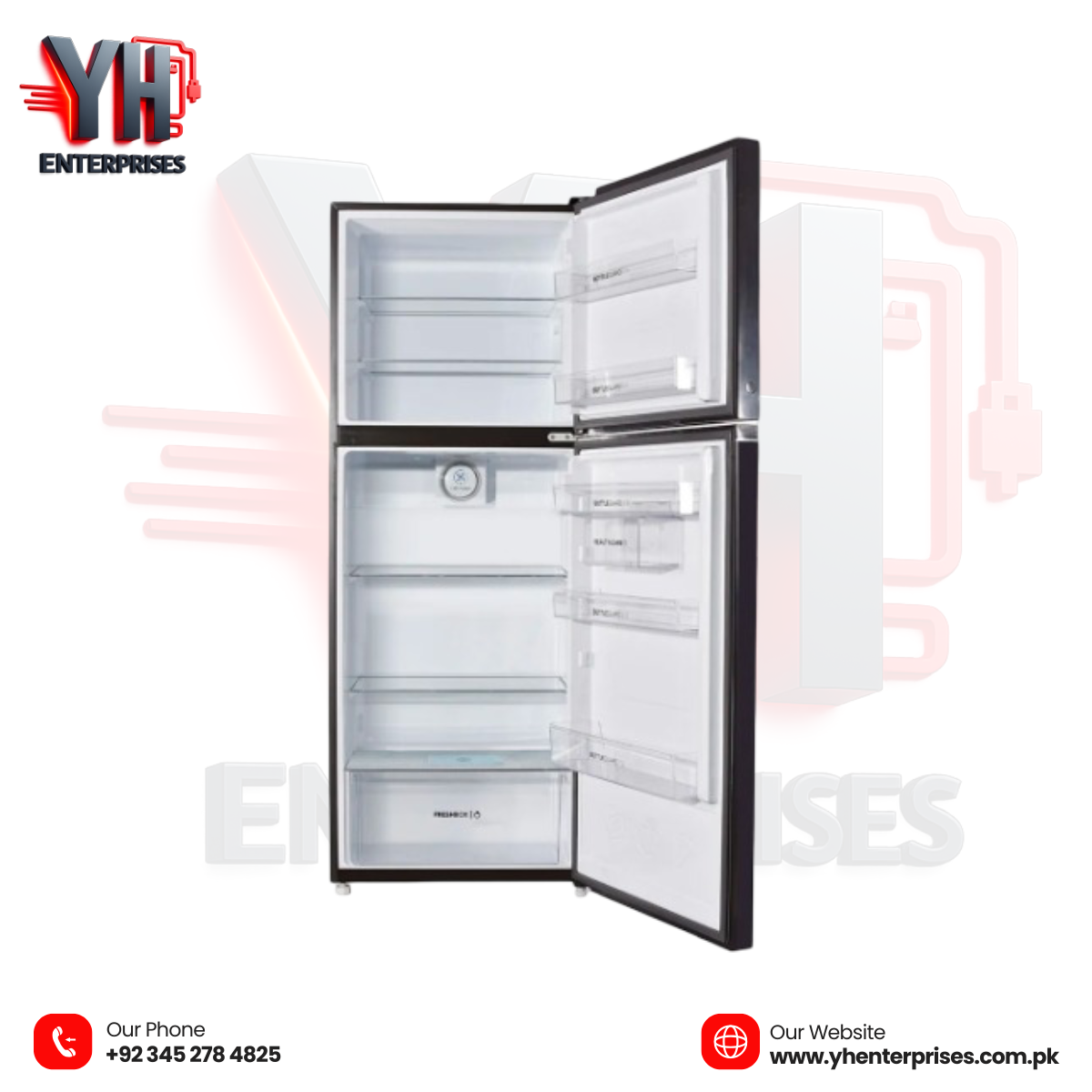 The Haier HRF-368 IFGA Digital Inverter Refrigerator is designed to deliver powerful cooling, long-lasting freshness, and energy efficiency for modern households. With a 368-liter gross capacity, it is an excellent choice for small to medium families, offering ample storage with smart organization.