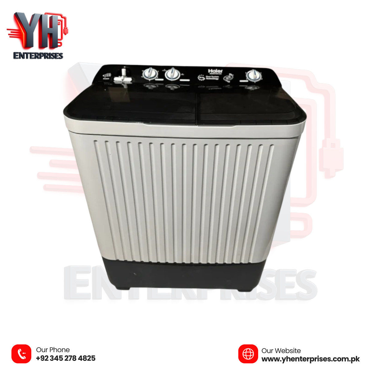 The Haier HWM-100 CS Twin Tub Washing Machine is designed to deliver powerful washing performance with maximum convenience. Built with a strong 99.99% copper motor and a spacious 10 kg wash capacity, it is perfect for medium to large families who need efficiency, durability, and fast washing cycles.