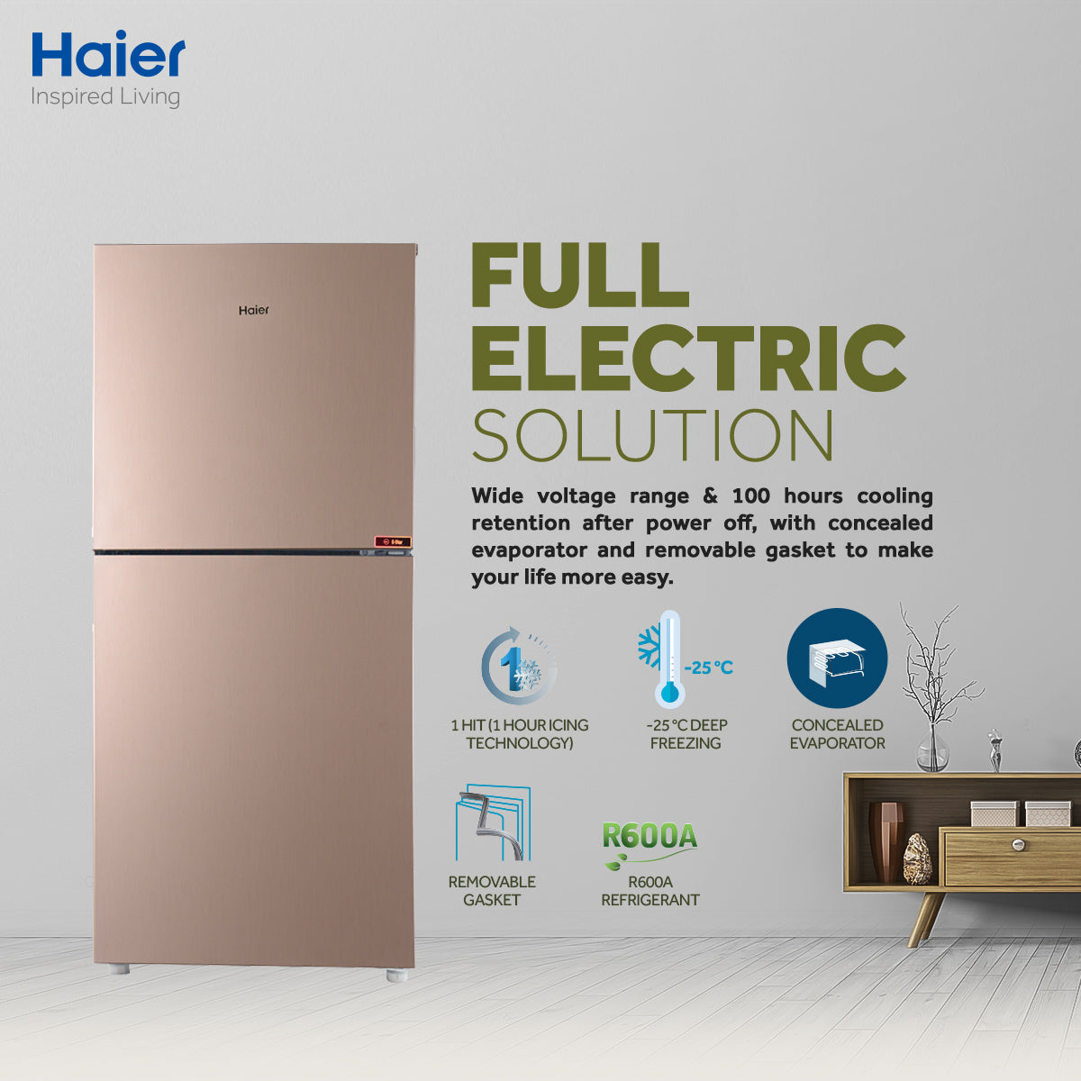 Haier Refrigerators 10 Cu Ft/E-Star Series/ HRF-276 EBD(Deepest Freeze +Direct Cool+ 1 Hour Icing Technology + Metal Door) Golden Colour/Refrigerator/ 10 Years Warranty