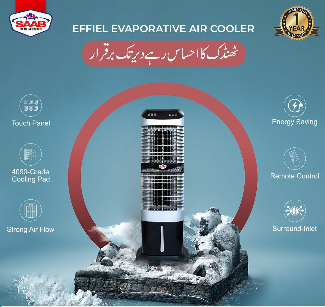 Saab Effiel Evaporative Air Room Cooler 99.9% Copper Motor Winding, - 2024 1 Year Brand Warranty